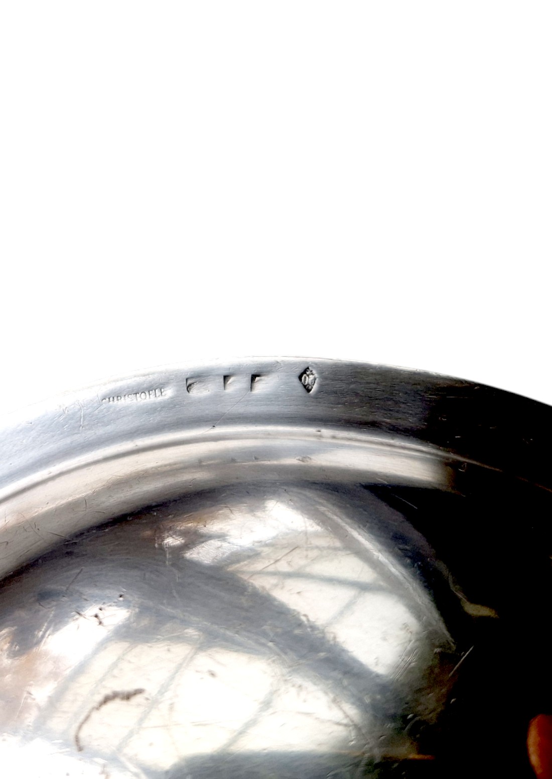 Rijetka posrebrena bombonijera Christofle, izrađena je u 30-im godinama 20.st. za francusku brodarsku kompaniju Compagnie Générale Transatlantique, čiji su luksuzni prekooceanski brodovi povezivali Europu s Amerikom u prvoj polovici 20.st.  Kuća Christofle, osnovana 1830. u Parizu, do danas je sinonim za luksuz u posrebrenom posuđu i priboru za serviranje najviše kvalitete. Njihove kolekcije krasile su i krase dvorove Napoleona III., luksuzne hotele poput Ritza i Orient Expressa do stolova današnjih kraljevskih kuća.