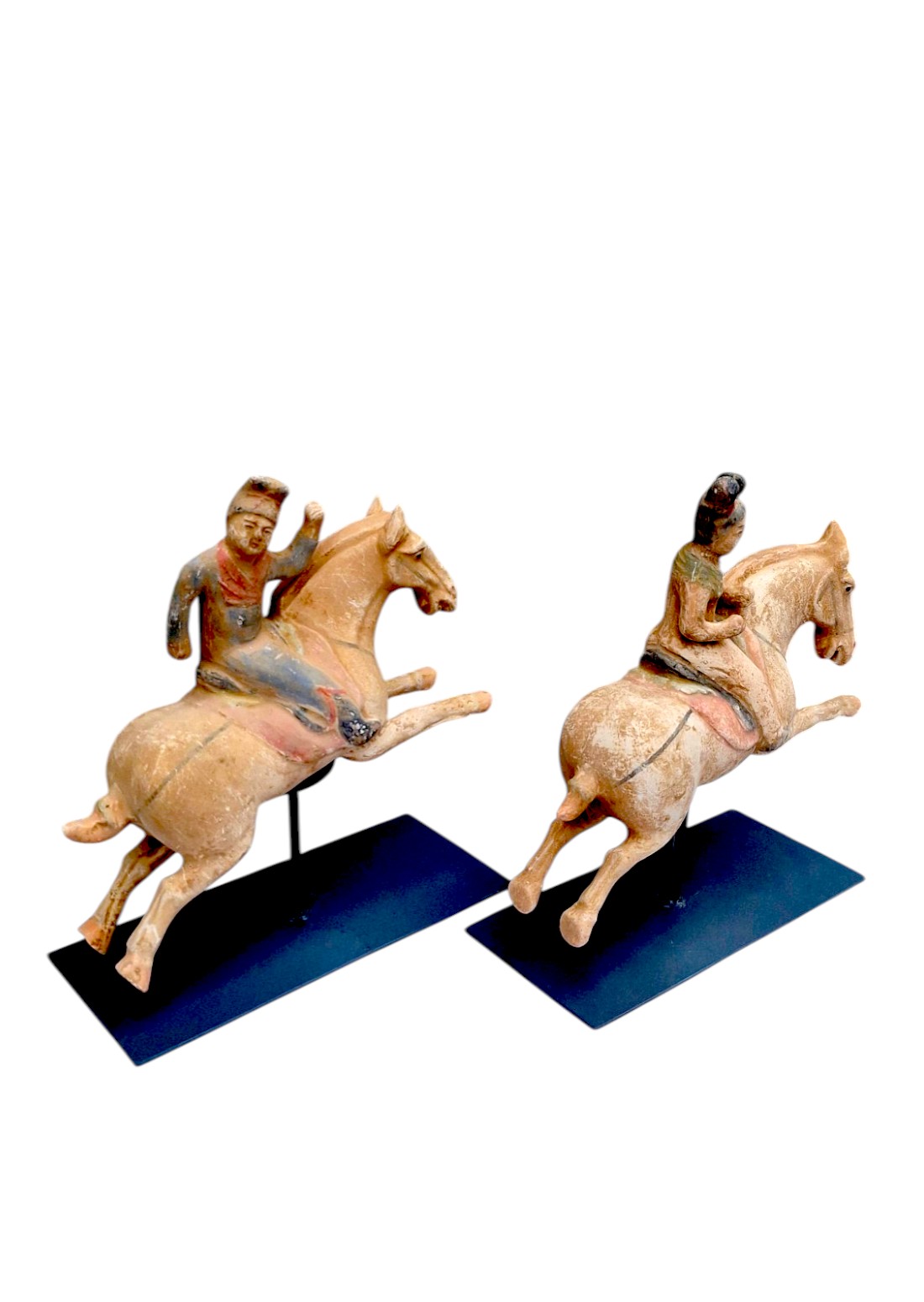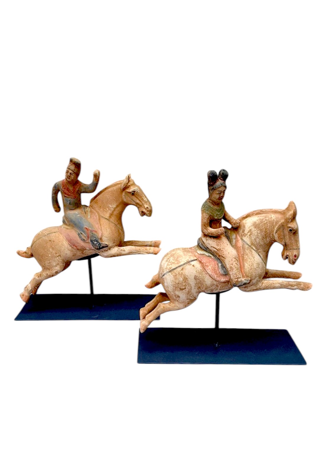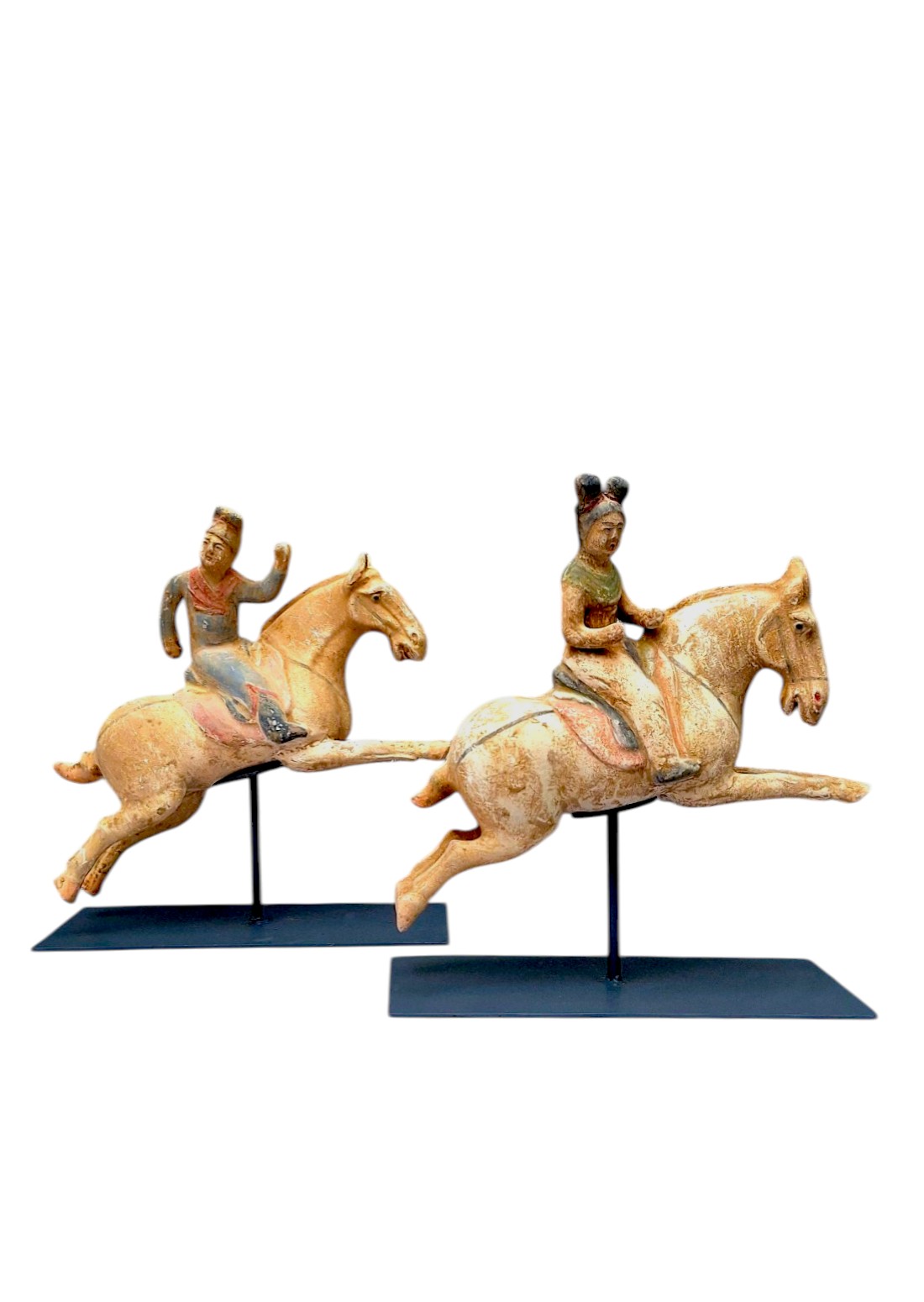Figura jahača na konju inspirirana je kineskim keramičkim figurama iz razdoblja dinastije Tang (7.-9.n.e.). Snažan konj u pokretu, stilizirani prikaz jahača i suzdržani tragovi polikromije daju ovom komadu prepoznatljiv karakter dalekoistočne umjetničke tradicije.