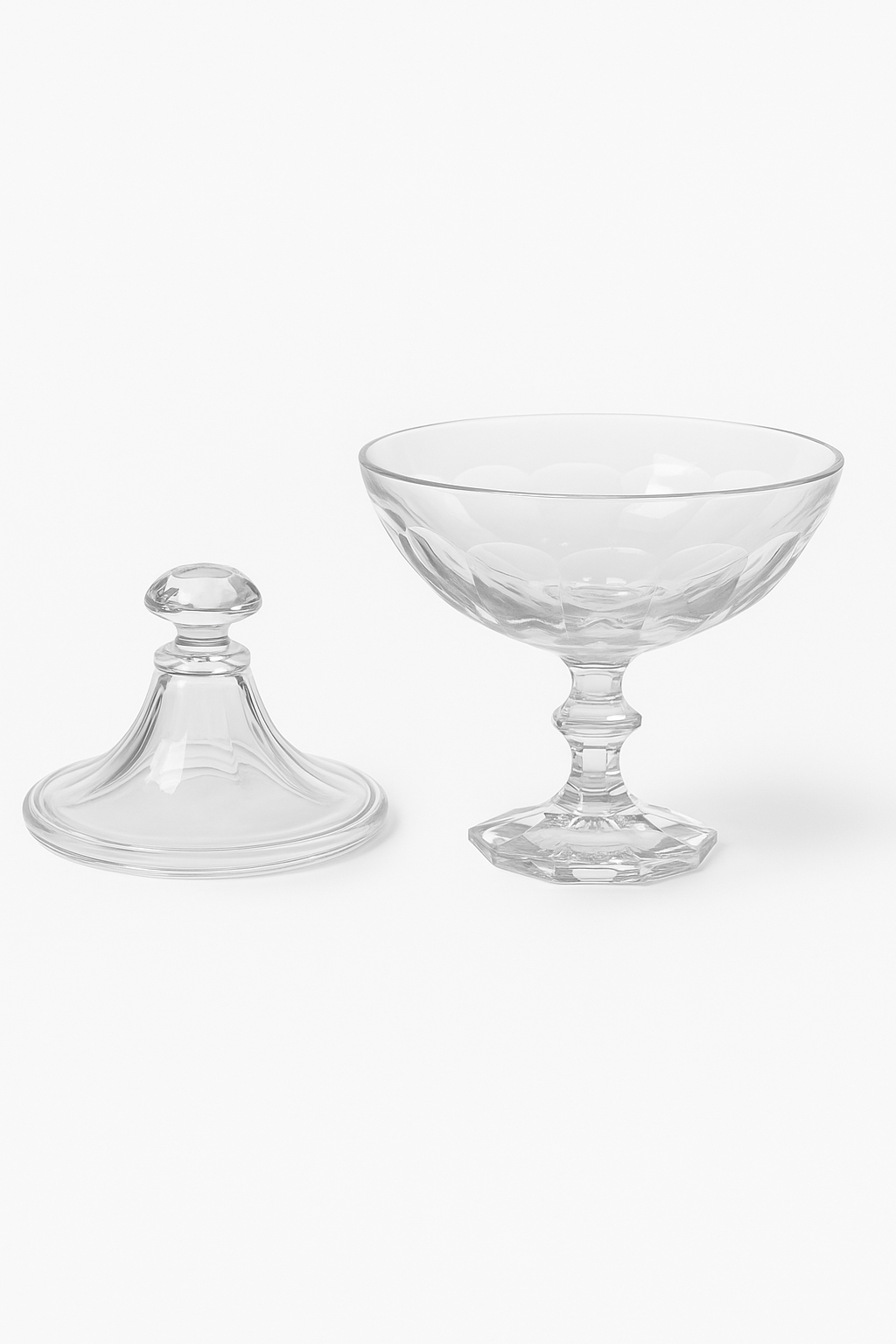 Klasična bombonijera/kompotijera (zdjela na stalku za posluživanje slatkiša) na šesterokutnom stalku, bez oštećenja. Za praline, keksiće, šećer.