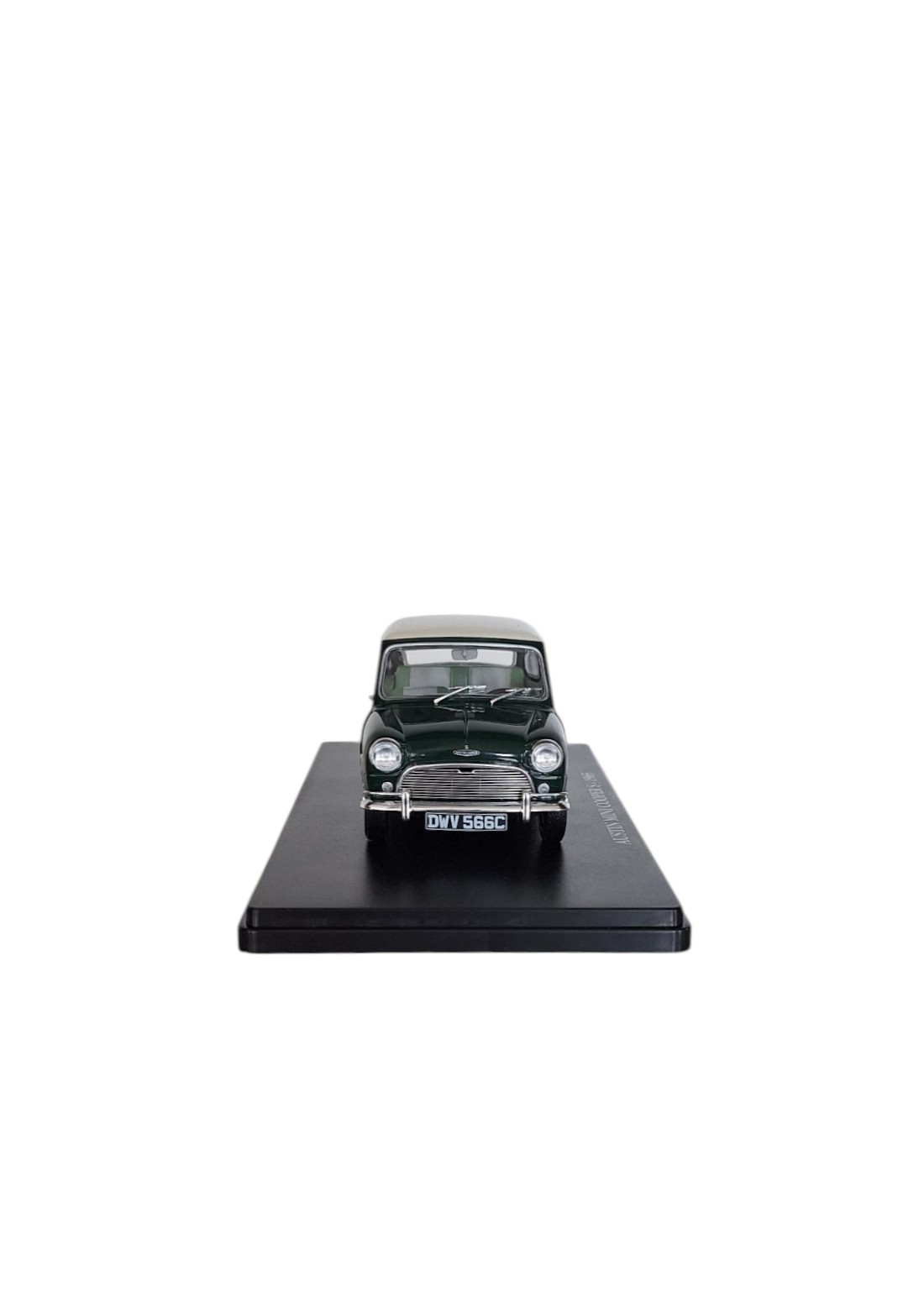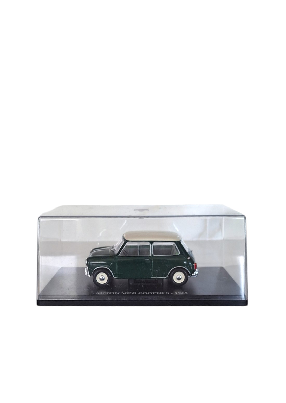 Kolekcionarski model kultnog Austin Mini Cooper S Mk I u prozirnoj izložbenoj kutiji i na postolju s kojeg se može skinuti. Ovaj prepoznatljivi klasik automobilskog dizajna osvaja svojim kompaktnim proporcijama i bezvremenskim šarmom, zbog čega je idealan za kolekcionare i ljubitelje oldtimera. Izvrstan je kao detalj za policu, ured, biblioteku ili kao poklon za ljubitelja automobilskih klasika.