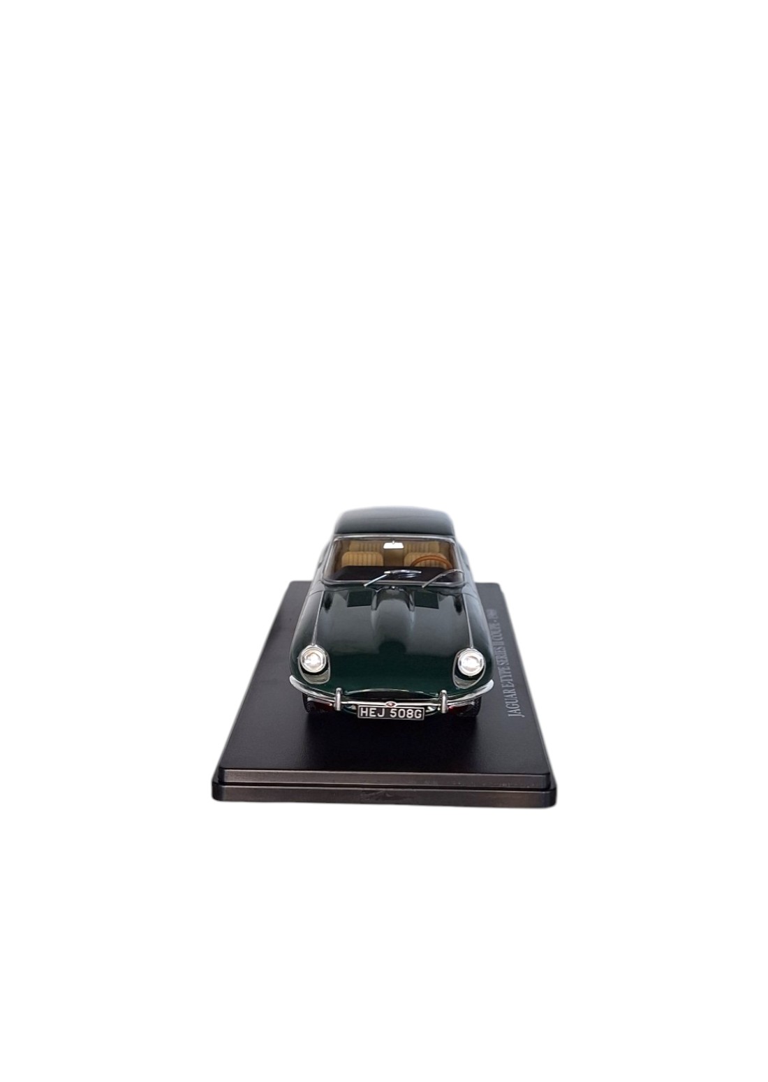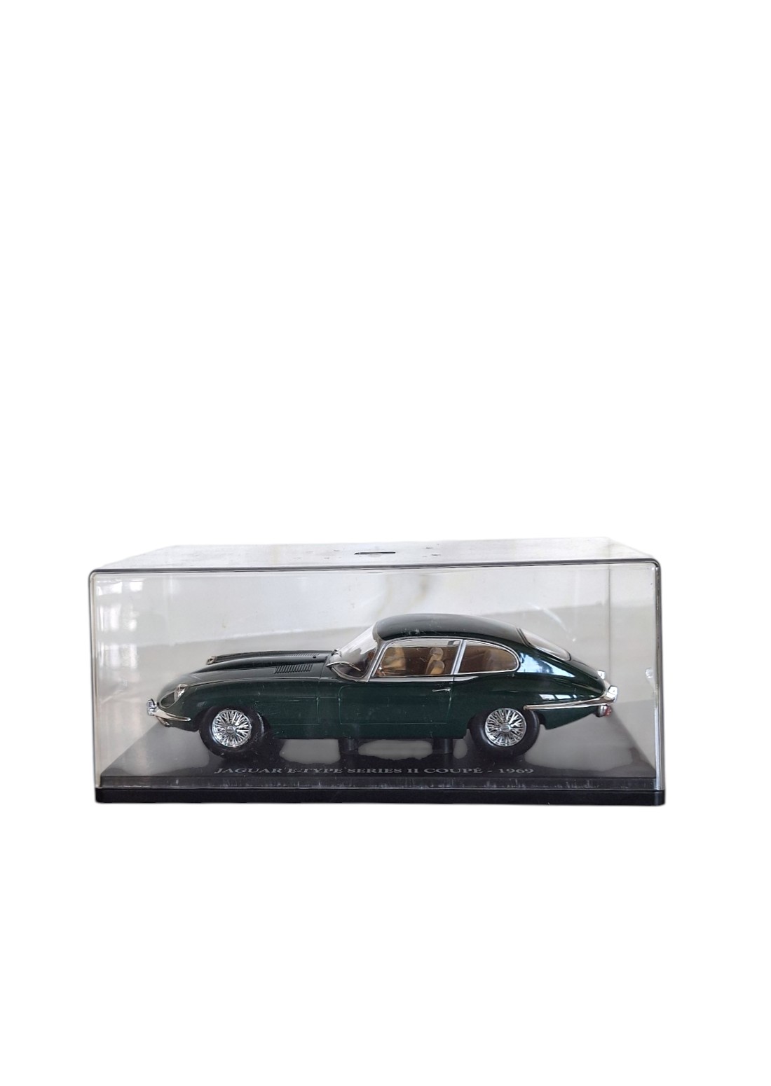 Kolekcionarski model legendarnog Jaguar E-Type Series II Coupé iz 1969. godine u izložbenoj kutiji, na postolju s kojeg se može skinuti. Ovaj kultni britanski sportski automobil, poznat po svojoj elegantnoj, izduženoj liniji i bezvremenskom dizajnu, smatra se jednim od najljepših automobilskih modela 20. stoljeća. Idealan je za kolekcionare, ljubitelje klasičnih automobila i kao sofisticiran dekorativni detalj za policu, ured, biblioteku ili kabinet. Unosi dašak britanske automobilske elegancije u interijer.