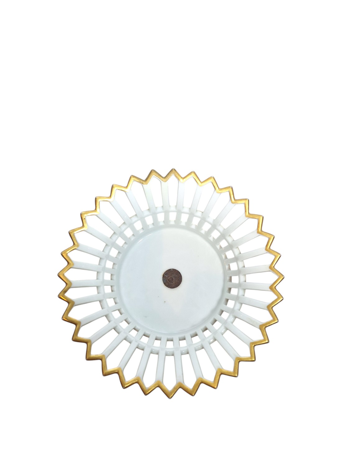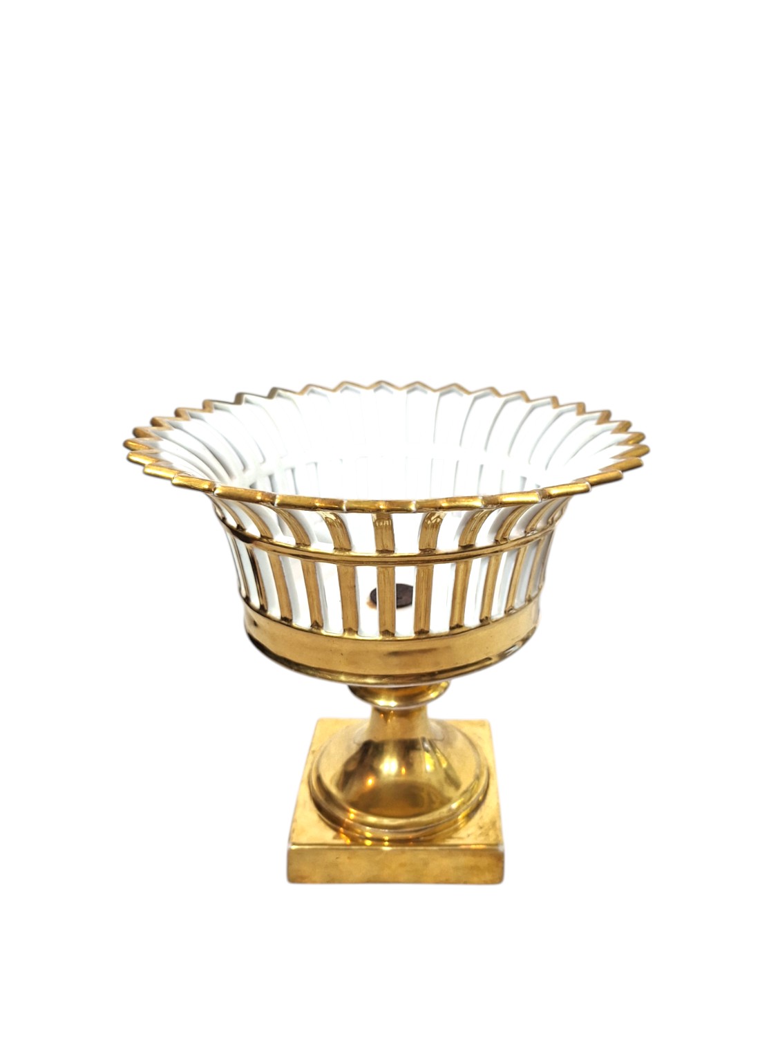 Iako njhov naziv može zavarati porculanske košarice na postolju ili kompotijere (franc. compote – voćni desert) pojavile su se u salonima europske aristokracije krajem 18. stoljeća kao središnji ukras stola ispunjen ne kompotom već kandiranim voćem, cvijećem ili slasticama. Izrađivane u luksuznom porculanu i ukrašene zlatom bile su tijekom cijelog 19. stoljeća statusni simbol profinjene izrade i bezvremenske elegancije. Pozlata na ovoj košarici nanešena je ručno, što toj daje dodatnu vrijednost. Iako nema žiga manufakture da se zaključiti da je nastala u 19.stoljeću kada žigosanje porculanskih proizvoda još nije bilo propisano kao obavezno. U besprijekornom je stanju.